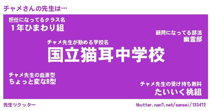 | 2回繰り返すあだ名 | 『チャチャ』『チチャャ』『いらいら』 |