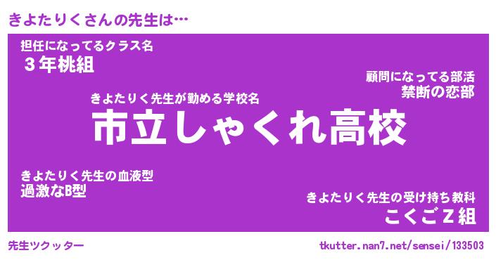 | 伝説のあだ名 | 『伝説のスナイパーきよたりく』 |