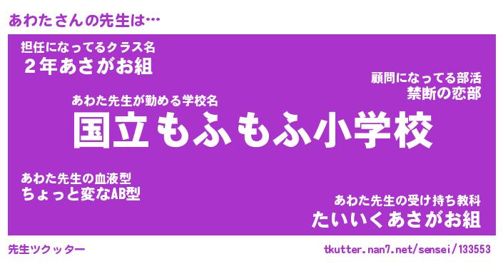 | ポケモン風あだ名 | 『アワチュウ』『アワタダネ』 |