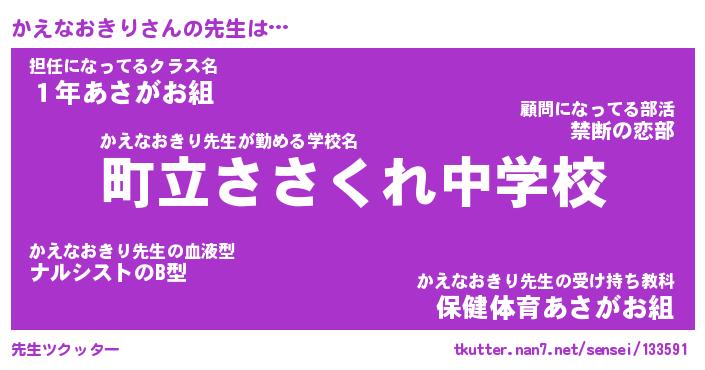 | ツイッター | かえなおきりさんのツイッターID『namakemono_kun』 |