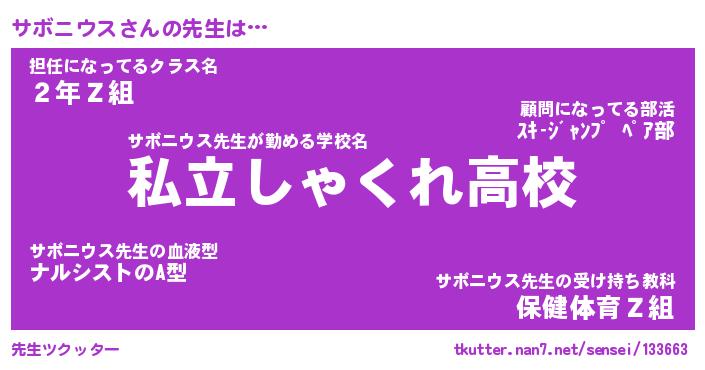 | ファンタジー風あだ名 | 『サボフェル』『エターナルサボニウスー』 |