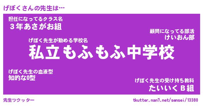 | 意味不明あだ名 | 『ペロリンげぼく』『げぼくフォーエバー』 |