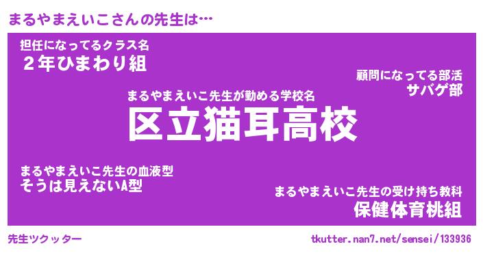 | ヘコむあだ名 | 『まるにー』『豆乳』『まるを』 |