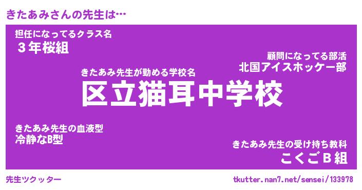 | 意味不明あだ名 | 『ペロリンきたあみ』『永久保存きたあみ』 |
