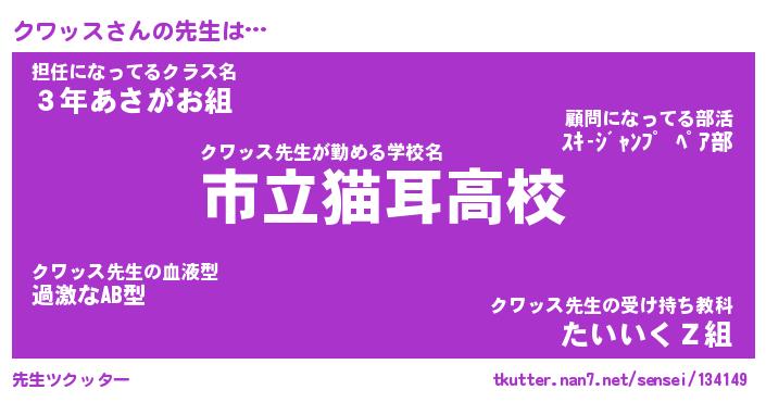 | ファンタジー風あだ名 | 『クワフェル』『エターナルクワッスー』 |