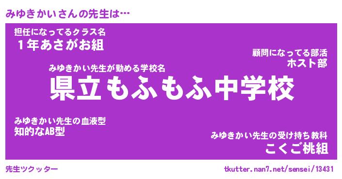 | ヘコむあだ名 | 『みゆにゅー』『つくし』『みゆを』 |