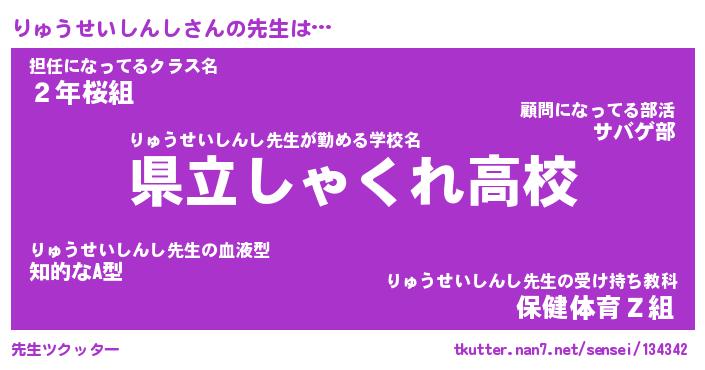| 男性向けラノベタイトル風あだ名 | 『りゅうせいしんしの憂鬱』 |