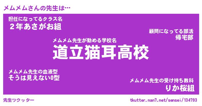 | ファンタジー風あだ名 | 『メムフェル』『エターナルメムメムー』 |