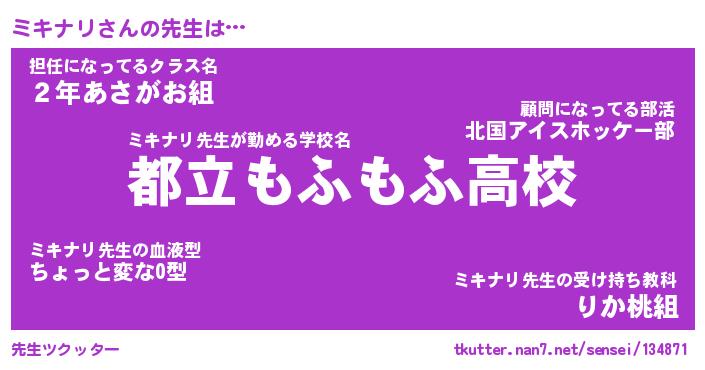 | 意味不明あだ名 | 『ペロリンミキナリ』『永久保存ミキナリ』 |