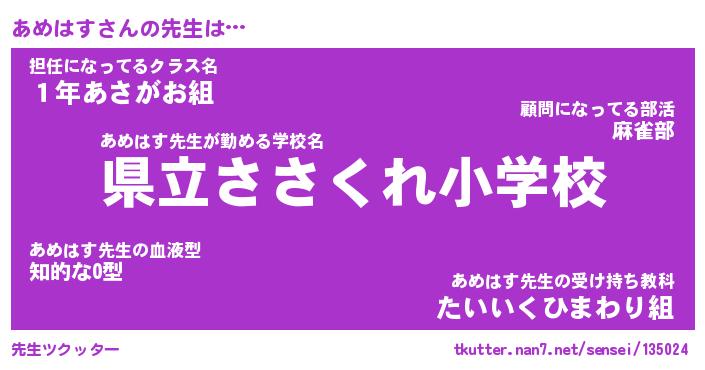 | 意味不明あだ名 | 『ペロリンあめはす』『永久保存あめはす』 |