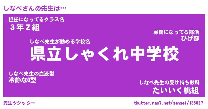 | ヒーロー風カッコイイあだ名 | 『スーパーシナベ』『ウルトラしなべマン』 |
