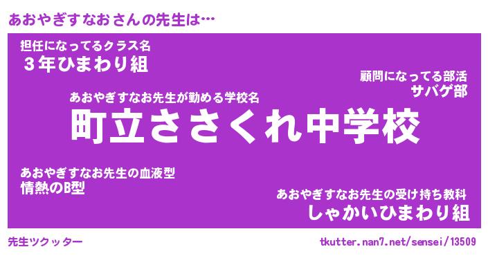 | 伝説のあだ名 | 『封印されしスナイパーあおやぎすなお』 |
