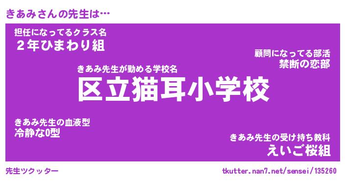 | ヘコむあだ名 | 『きあにー』『酢こんぶ』『きあ太郎』 |
