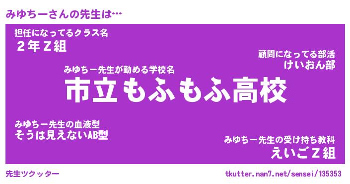 | ヘコむあだ名 | 『みゆにゅー』『なまこ酢』『みゆを』 |