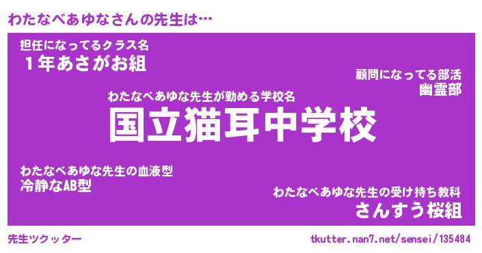 | ポケモン風あだ名 | 『ワタチュウ』『ワタナダネ』 |