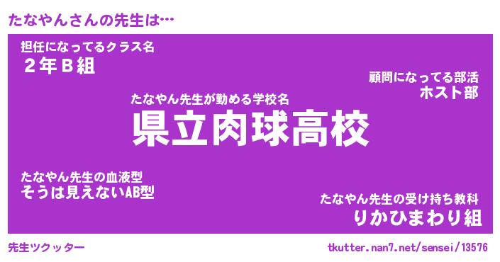 | ヘコむあだ名 | 『たなふぇ~』『なまこ酢』 |