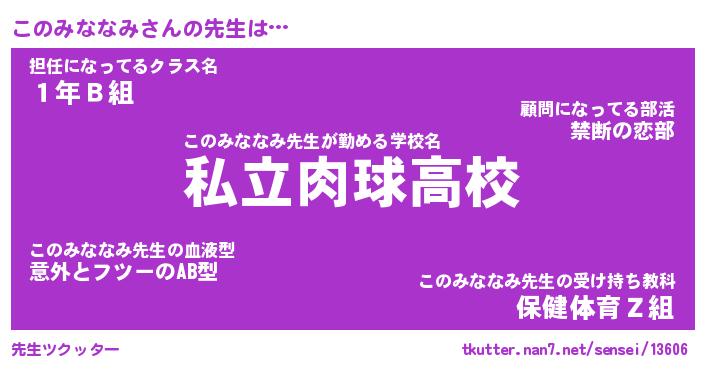 | 男性向けラノベタイトル風あだ名 | 『このみななみの憂鬱』 |