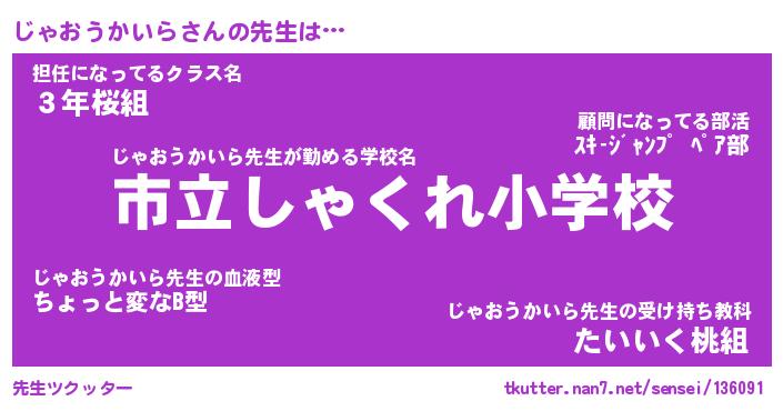 | 肩書あだ名 | 『じゃおうかいら御曹司』 |