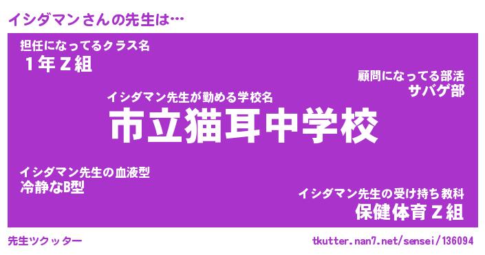 | ファンタジー風あだ名 | 『イシフェル』『エターナルイシダマンー』 |