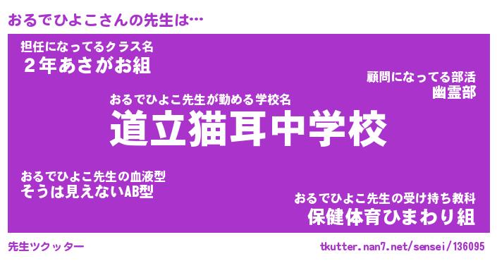 | ヘコむあだ名 | 『おるにー』『なまこ酢』『おる太郎』 |