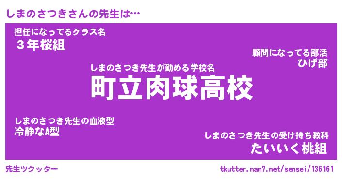 | ヒーロー風カッコイイあだ名 | 『スーパーシマノサツキ』『魔戒騎士シマ』 |