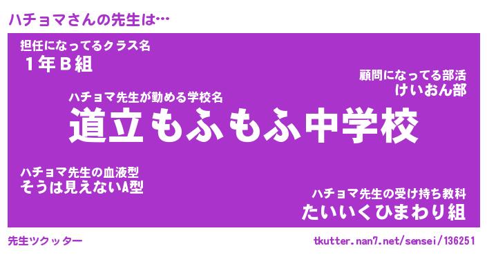 | ファンタジー風あだ名 | 『ハチフェル』『エターナルハチョマー』 |