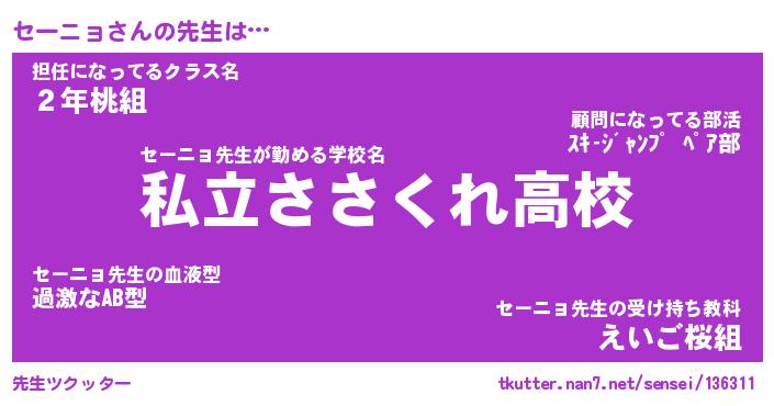 | ポケモン風あだ名 | 『セーチュウ』『セーニダネ』 |