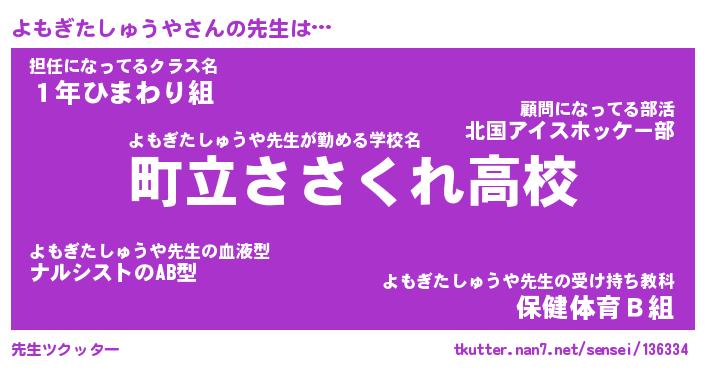 | 伝説のあだ名 | 『封印されしスナイパーよもぎたしゅうや』 |