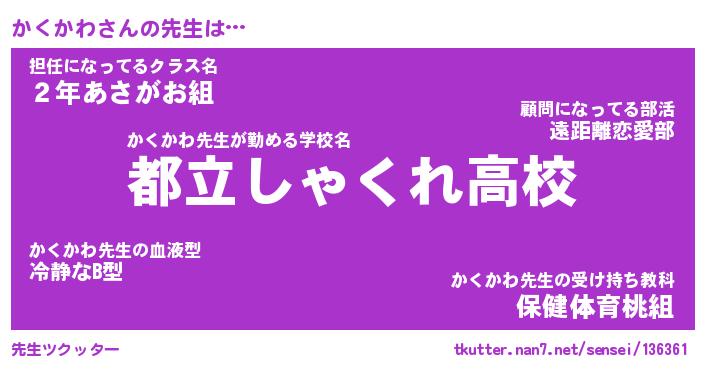 | 意味不明あだ名 | 『ペロリンかくかわ』『永久保存かくかわ』 |