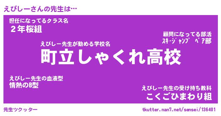 | 意味不明あだ名 | 『ペロリンえびしー』『永久保存えびしー』 |