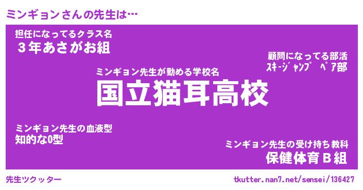 | ヘコむあだ名 | 『ミンにー』『豆乳』『ミンっ子』 |