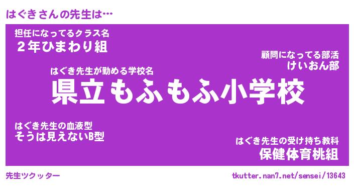 | ヘコむあだ名 | 『はぐにゅー』『牛乳』『はぐっぺ』 |
