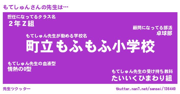 | ヒーロー風カッコイイあだ名 | 『スーパーモテシュン』『魔戒騎士モテ』 |