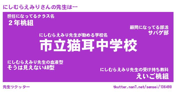 | ヘコむあだ名 | 『にしにー』『なまこ酢』 |