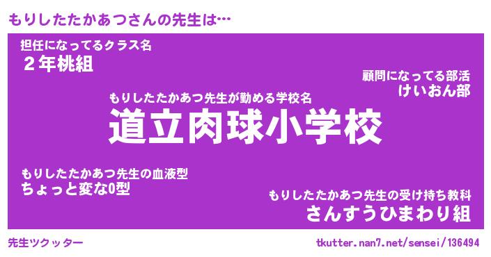 | ヘコむあだ名 | 『もりふぇ~』『酢こんぶ』 |