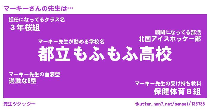 | ファンタジー風あだ名 | 『マーフェル』『エターナルマーキーー』 |