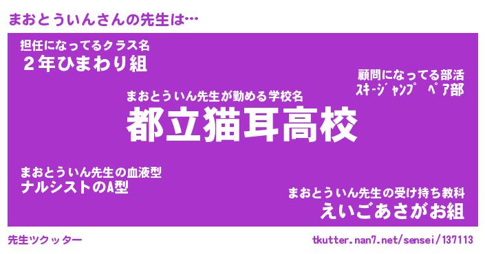 | ヘコむあだ名 | 『まおにー』『なまこ酢』『まお太郎』 |