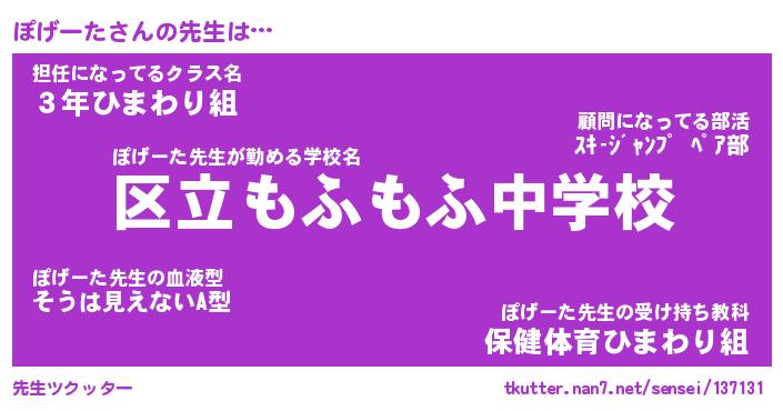 | ファンタジー風あだ名 | 『ポゲフェル』『エターナルポゲーター』 |
