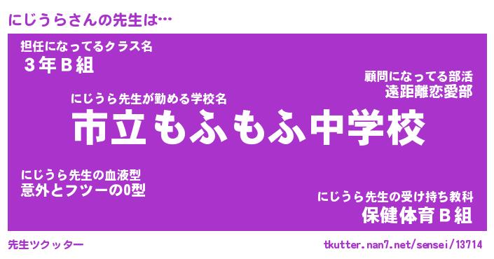 | 意味不明あだ名 | 『ペロリンにじうら』『永久保存にじうら』 |