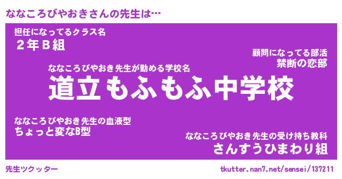 | ツイッター | ななころびやおきさんのツイッターID『dendenmushi_idle』 |