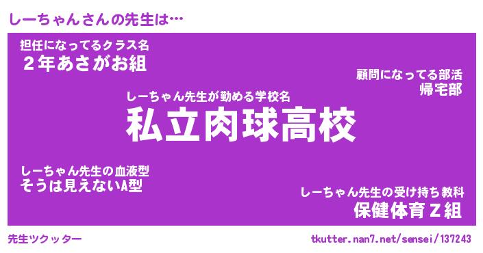 | 胡散臭い通販商品みたいなあだ名 | 『必ず成功するブレスレット…その名も「しーちゃん」』 |