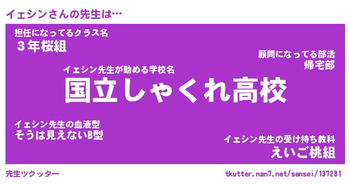 | ファンタジー風あだ名 | 『イェフェル』『エターナルイェシンー』 |