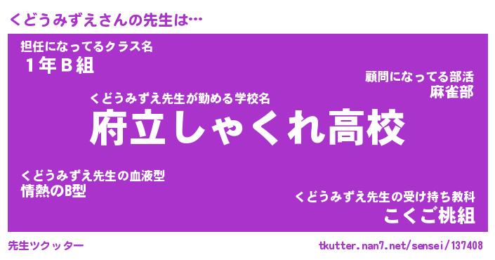 | ヒーロー風カッコイイあだ名 | 『スーパークドウミズエ』『魔戒騎士クド』 |