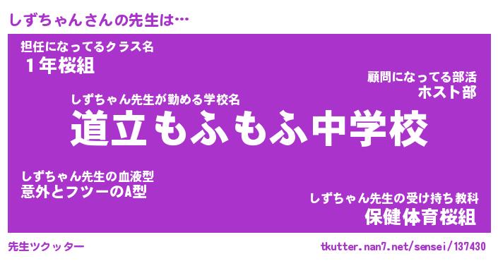 | ファンタジー風あだ名 | 『シズフェル』『エターナルシズチャンー』 |