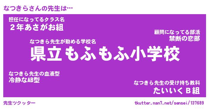 | 2回繰り返すあだ名 | 『なつなつ』『ななつつ』『ぬめぬめ』 |