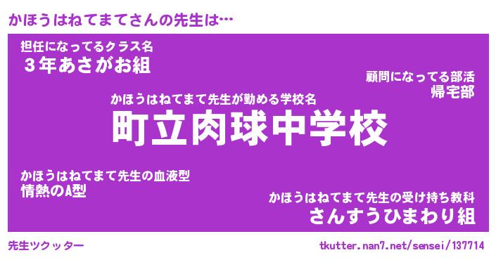 | ヒーロー風カッコイイあだ名 | 『スーパーカホウハネテマテ』 |
