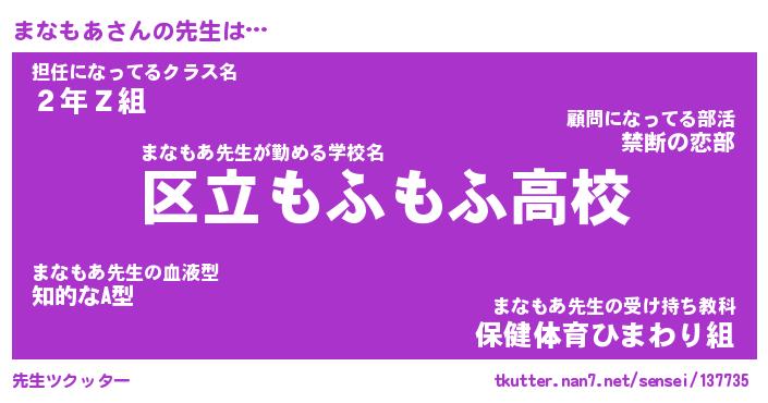 | 意味不明あだ名 | 『ペロリンまなもあ』『永久保存まなもあ』 |