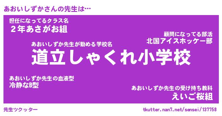| ヒーロー風カッコイイあだ名 | 『スーパーアオイシズカ』『銀牙騎士アオ』 |
