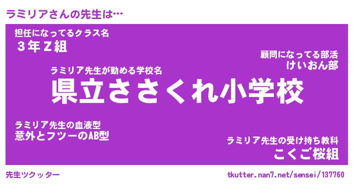 | 意味不明あだ名 | 『ペロリンラミリア』『永久保存ラミリア』 |