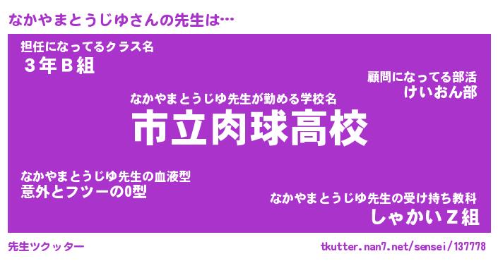 | 胡散臭い通販商品みたいなあだ名 | 『必ず成功するブレスレット…その名も「なかやまとうじゆ」』 |